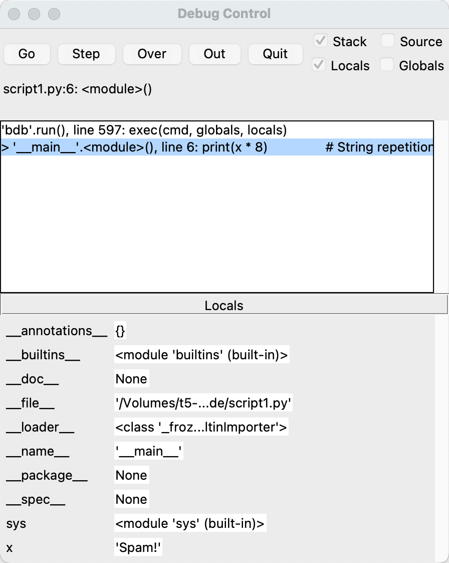 除了基本的编辑和运行函数还有之前一节的可用性工具外,idle还提供了更高级的功能,包括一个点击程序图形化的调试器 和一个对象浏览器。idle调试器通过 debug 菜单启用,对象浏览器通过 file 菜单启用。浏览器允许你通过模块搜索路径来导航到文件和文件中的对象;点击文件或对象会在文本编辑窗口打开对应的源。